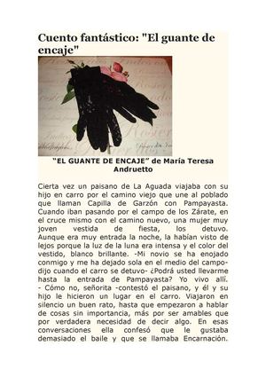 - Teniendo en cuenta la lectura del cuento » El guante de encaje » respondan:
