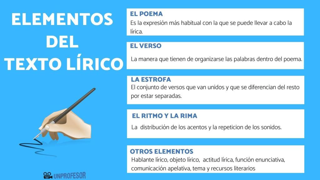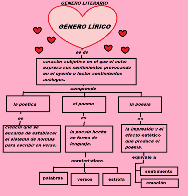 En general, el género lírico se caracteriza por lo siguiente: Expresa una realidad subjetiva del poeta o compositor, como sus sentimientos, impresiones, reflexiones, etc., usando para ello un lenguaje propio, original, en el que abundan los recursos retóricos, como la metáfora. Es un género literario en el que el autor transmite sentimientos, emociones o sensaciones respecto a una persona u objeto de inspiración. La expresión habitual del género lírico es el poema.